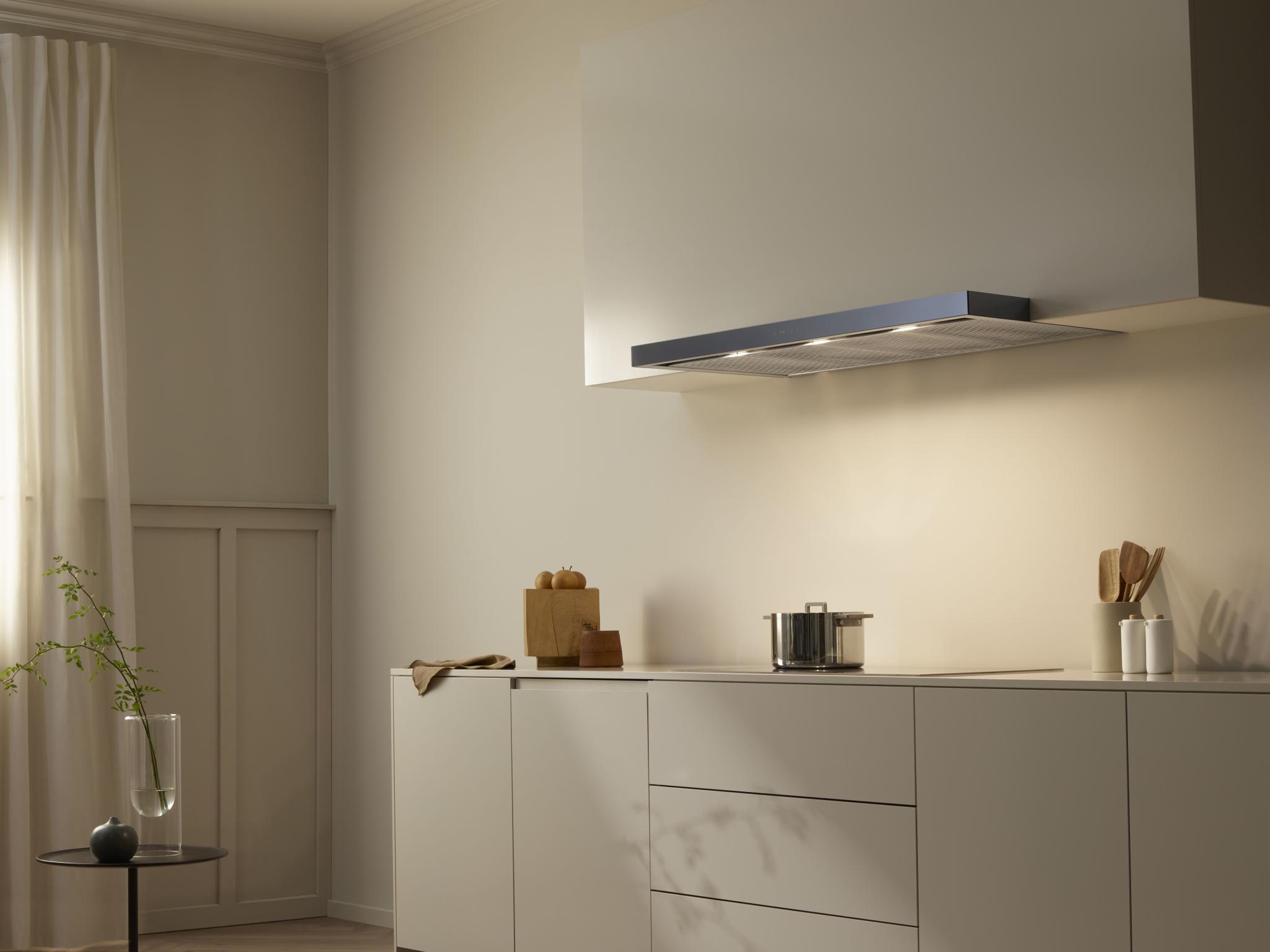 Die Abzugshauben von V-ZUG sind leistungsstark und intelligent. Für einen sorgsamen Umgang mit der Energie wird die Abzugsleistung durch Automatikfunktionen gesteuert. Obwohl sie besonders leistungsstark sind, bleiben die Abzüge selbst auf höchster Stufe erfreulich geräuscharm.