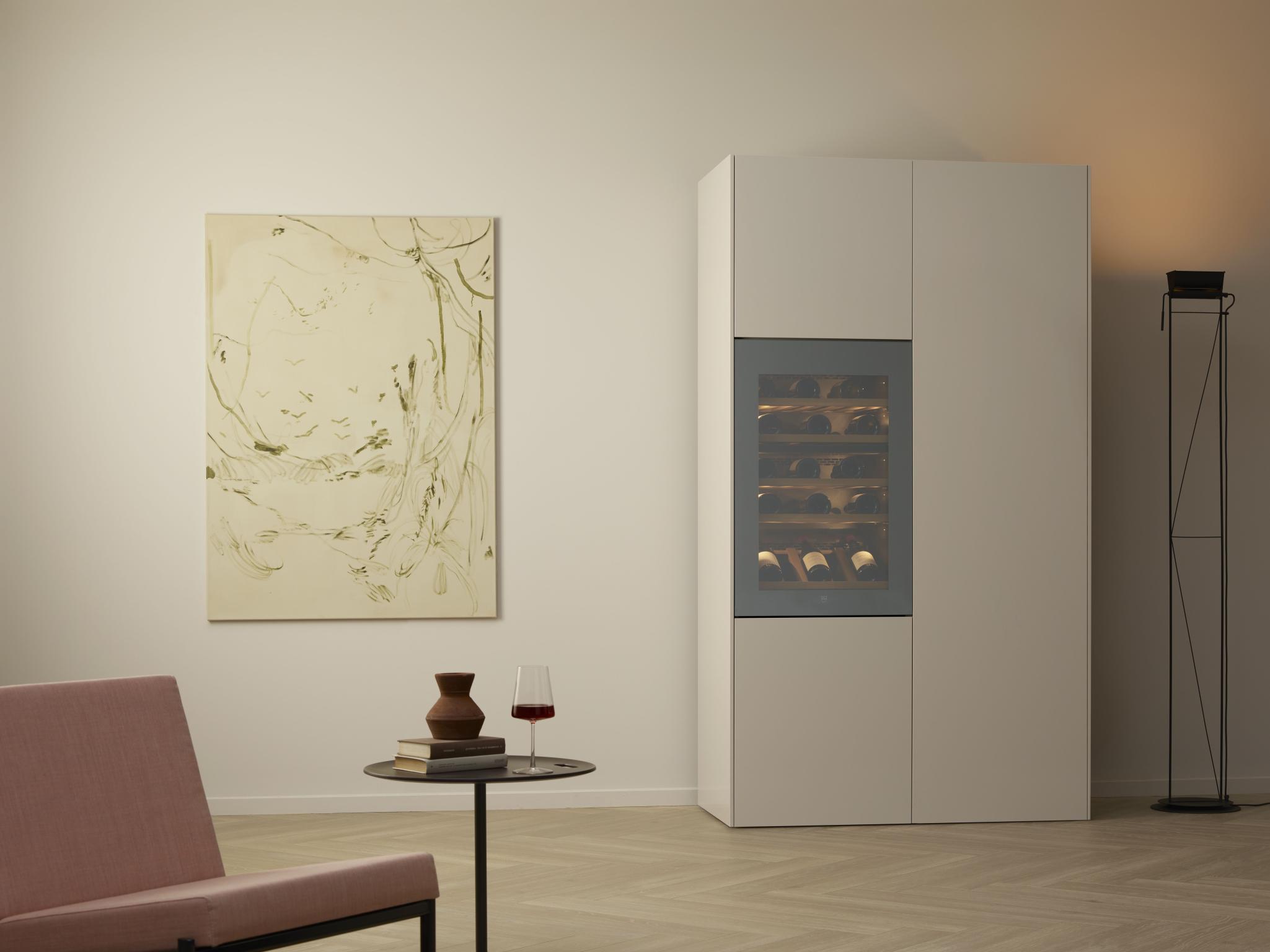 Die Holztablare und die genaue Temperaturregelautomatik gewährleisten eine optimale Lagerung und bieten auch den edelsten Weinsammlungen einen idealen Schutz. Das Spiegelglas-Finish bildet einen nahtlosen Übergang zu anderen Geräten von V-ZUG. Die Tablare lassen sich auch schräg positionieren, sodass Sie ausgewählte Flaschen perfekt in Szene setzen können.